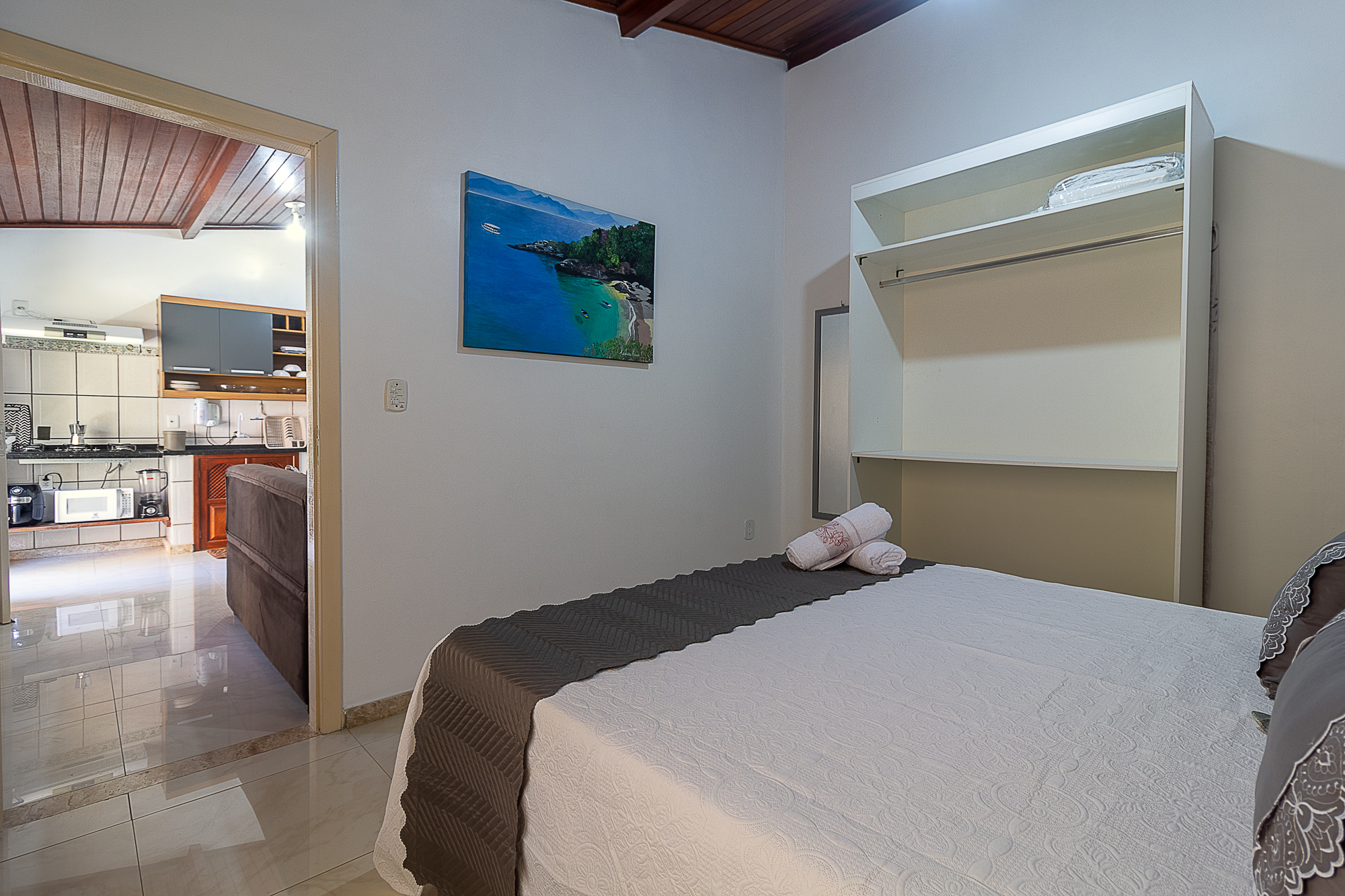 Ideal para pequenas famílias ou grupos de amigos, nosso Apartamento Térreo oferece conforto e praticidade para até 3 pessoas. Equipado com uma cama de casal e uma cama de solteiro, além de uma cozinha compacta, é perfeito para quem busca uma estadia acolhedora e funcional em Arraial d'Ajuda. Venha desfrutar de momentos inesquecíveis na Villa Sunset!